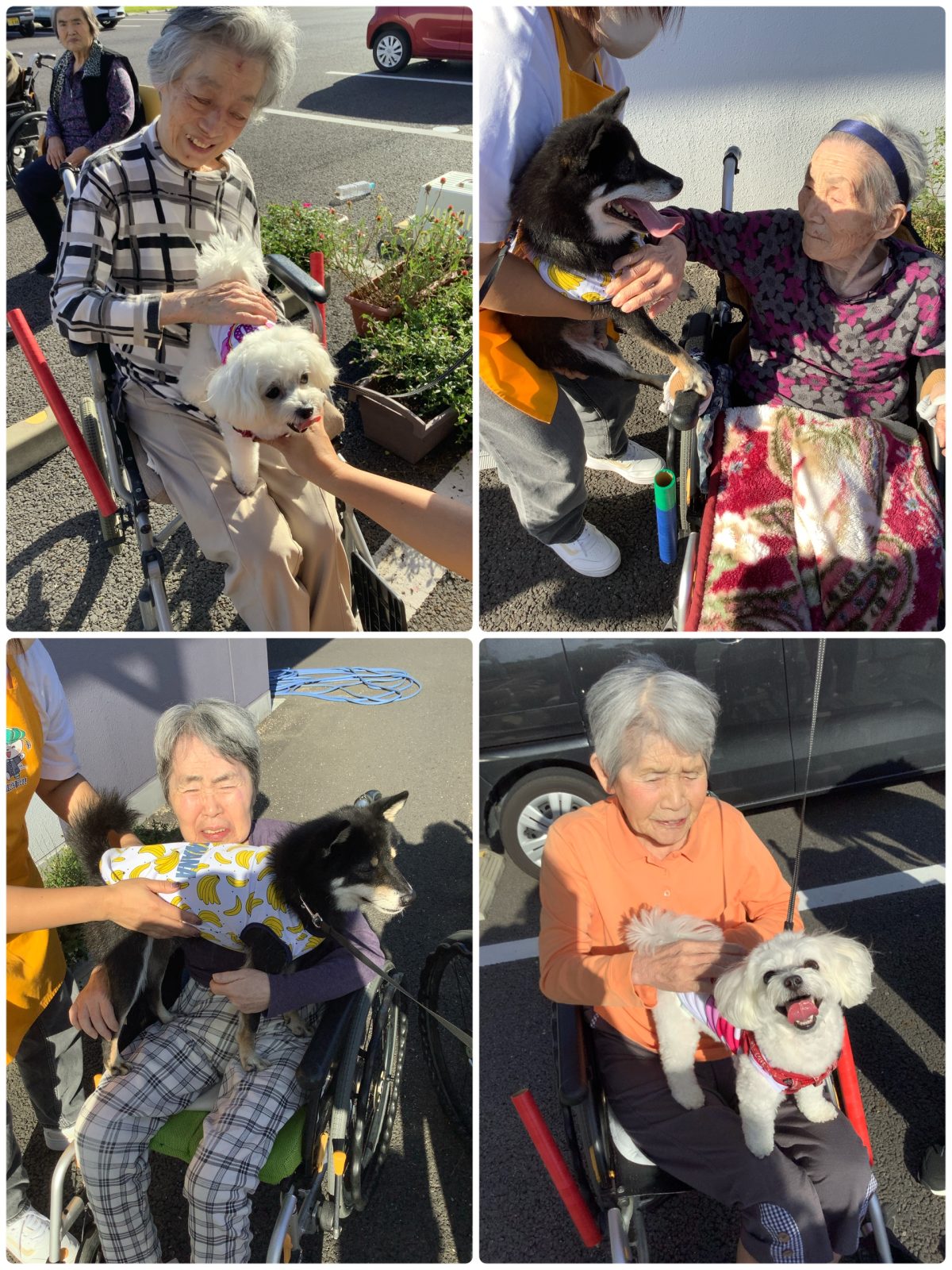 1Fのユニット合同で可愛いワンちゃんとのふれあいレクを開催していました(*^-^*)